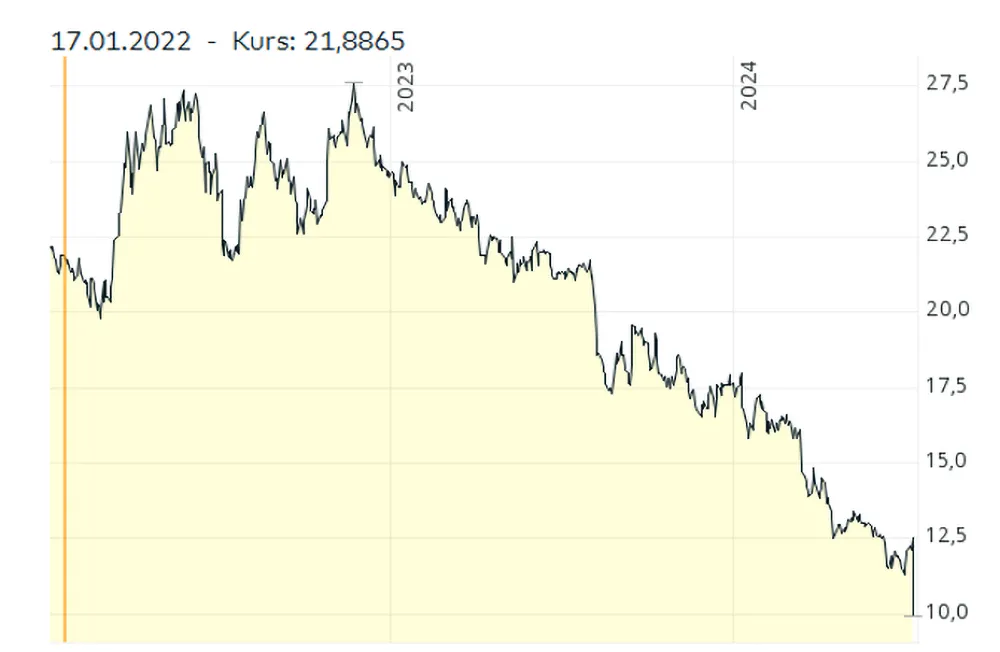 Vor diesem Hintergrund wurde behördlich festgestellt, dass der Kapitalmarkt spätestens seit dem 30.06.2023 auf Basis eines unvollständigen Risikobildes informiert gewesen sein könnte. In der Folge kam es nach späteren Veröffentlichungen zu deutlichen Kursreaktionen; nach der Ad-hoc-Mitteilung vom 12.07.2024 zur Beauftragung eines Sanierungsgutachtens fiel die Aktie im Zeitraum vom 08.07. bis 23.07. von 21,70 Euro auf 10,54 Euro.